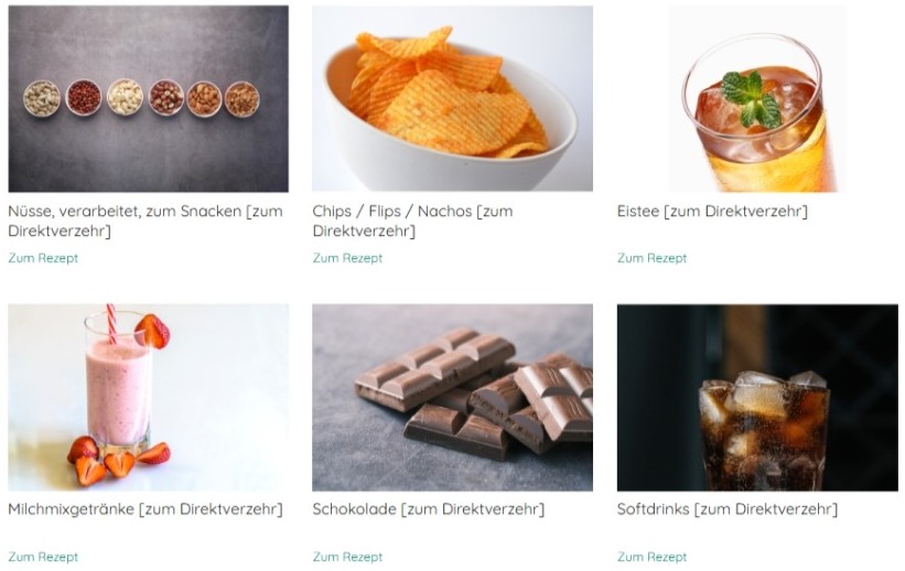 Damit Snacks & Getränke sich wie Gerichte planen lassen, gibt es in der Zutatendatenbank nun Dummy-Rezepturen mit der Kennzeichnung [Direktverzehr] (z. B. Chips/Flips/Nachos, Schokolade, Müsliriegel, Kekse, Bonbons, Marshmallows, Softdrinks, Saftschorlen, Mineralwasser, Milch/Alternativen, Obst zum Snacken …):