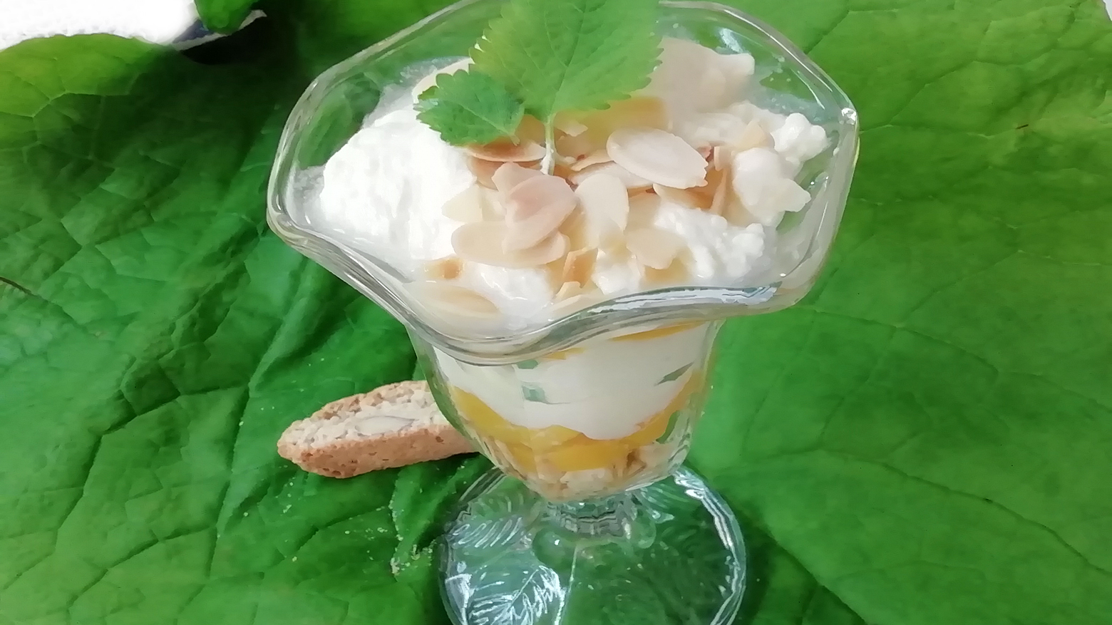 - Vor dem Servieren die Mandelblättchen in einer Pfanne bräunen, abkühlen lassen und auf der festgewordenen Creme verteilen.