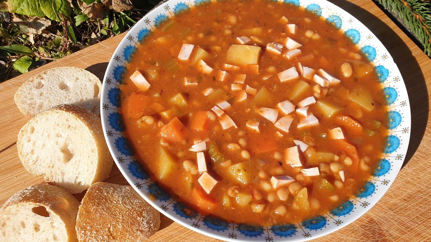 - Wienerle in feine Scheiben schneiden, zur Minestrone geben und kurz erwärmen.