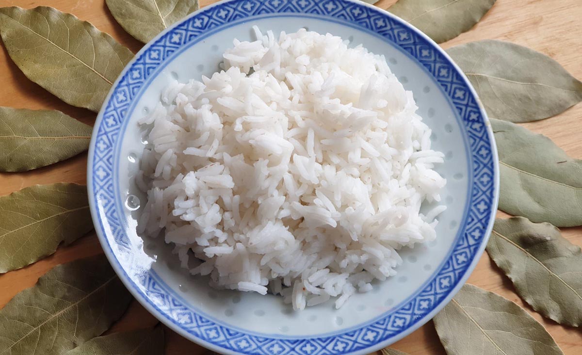 - Reis (Langkornreis oder Basmatireis) mit Salz, Lorbeerblätter und Wasser zum Kochen bringen.