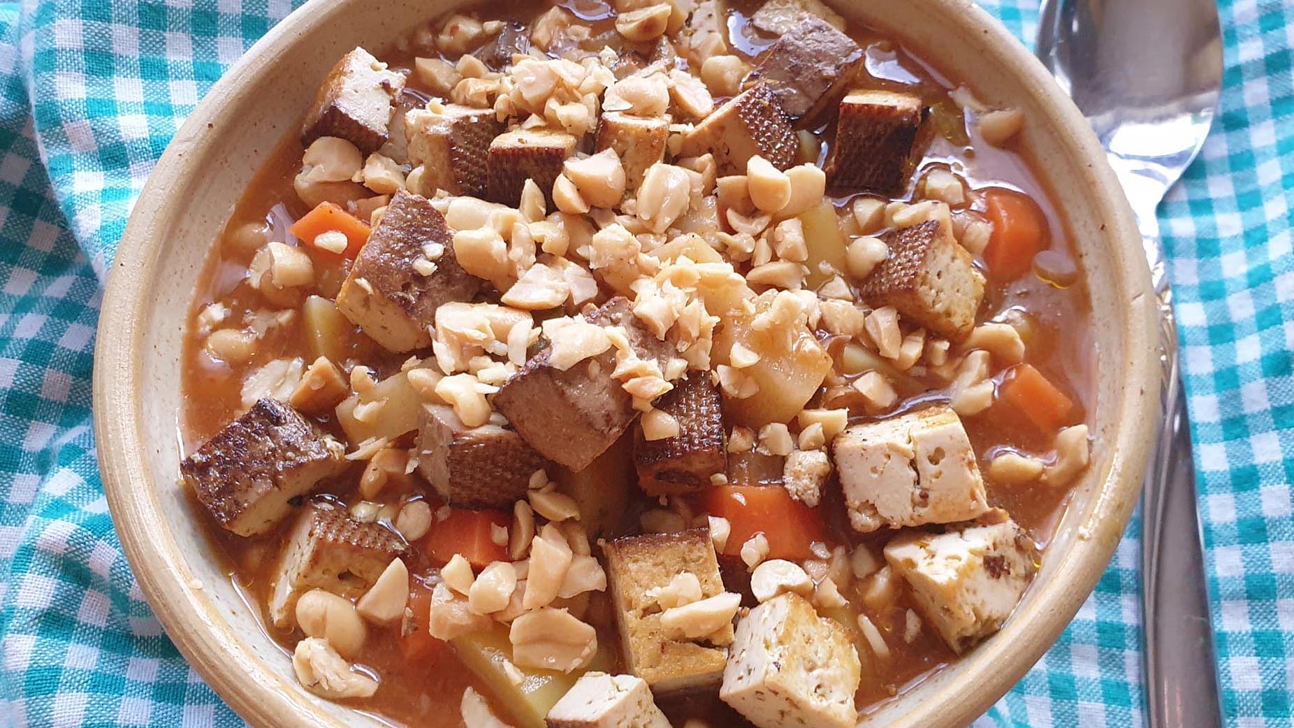 - Cashewkerne grob mit einem Messer hacken und mit dem Tofu über die Minestrone streuen.