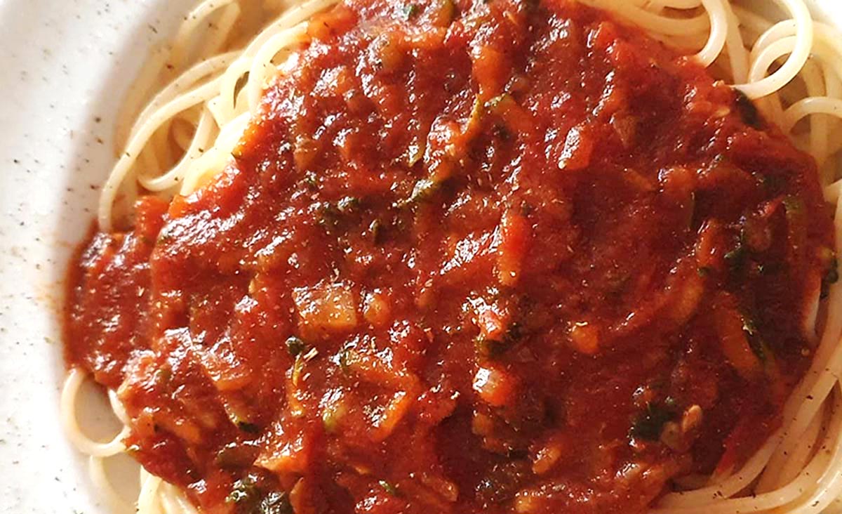 - Tomatenwürfel, Tomatenmark, Salz, Pfeffer und Gemüsebrühe und die Hälfte der Kräuter dazugeben und abschmecken, ca. 15-20 min weiter köcheln lassen.